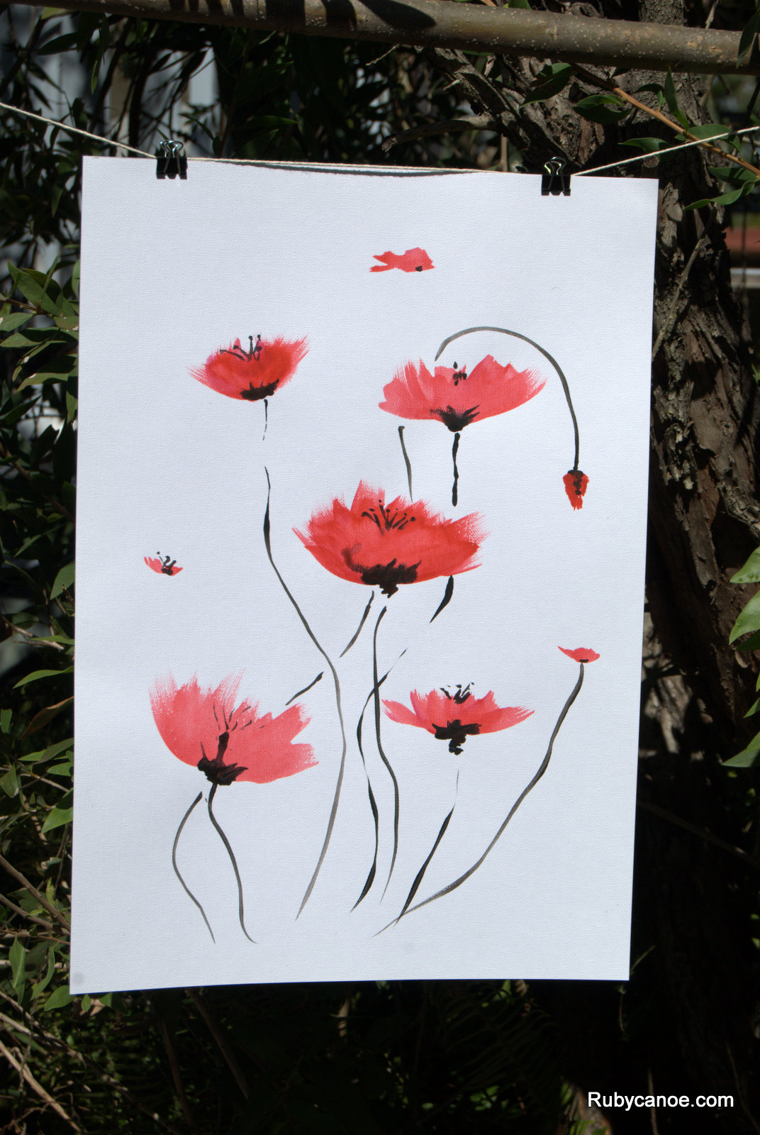 The top picture was on canvas paper and I had no intention of doing any pencil sketches on canvas but I was very happy with the result. I like something a little different. When I first started the spree I looked to the internet for inspiration. Google images and Pinterest mainly. And as Julia Roberts so wisely said in Pretty Woman…”Big mistake…big…huge” why? because I got stuck on Pinterest and I just couldn’t stop. Had many many hours of a Pinfest. Don’t get me wrong, I loved it so much, but I didn’t get any work done. I think anyone who has ever said “oh, I will just pop over to Pinterest for a few minutes” will know exactly what I mean, right? Or am I the only one that has done that? But I did eventually escape and did some work, I think I ended up with about 20 or 30 different poppy pictures. Some better than others.