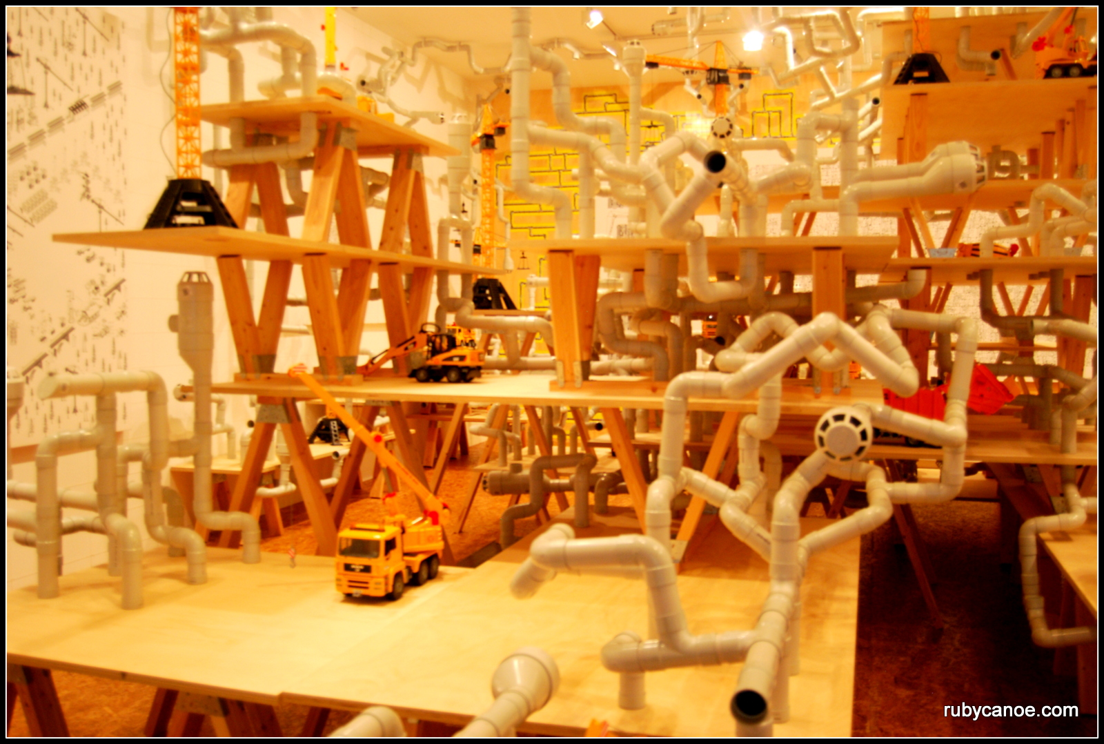 The Toy Room (That’s what I am calling it anyway) Just kicking myself. I didn’t take a photo of the information on the (very patient) artist who completed this work. This is quite a small room but it is completely full of these pvc piping and toys (trucks and cranes etc). (The next 4 photo’s are from the same room).