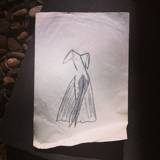 This one is my favourite. I was a little put out by the comments of the teacher. The comment “Swatches/texture?”…didn’t you see my note at the top left hand corner in black texta felt pen and the word “gold” underlined in gold…I explained that I couldn’t find any black and gold mesh…well who could back then, it was all being used to make hand bags and to cloth models on game shows….ah we all remember the great mesh shortage of 1985 don’t we? Hmmm those were tough times indeed.