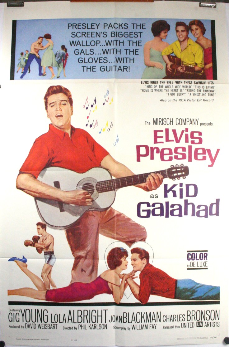 So guess who’s out of the Army again? You guessed it…Elvis AKA Walter Gulick AKA Kid Galahad. Still looking pretty damn fine in his uniform and singing some pretty cool songs. Most people won’t know them but lots will. Opening scene, Walter hitching a ride on the platform of the back of a truck…doesn’t look real safe, but I would expect Walter to be invincible for the next hour or two. Kid Galahad is a remake of the 1937 film of the same name, the director of the 1937 version was Michael Curtiz (director of King Creole).