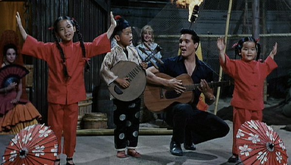 Final scene. Bring out those cute Chinese gals! Now sing a really cute little version of the title song…Girls! Girls! Girls! but it’s Dainty Little Moonbeams and Girls! Girls! Girls! Geez those girls really throw everything into that twist!