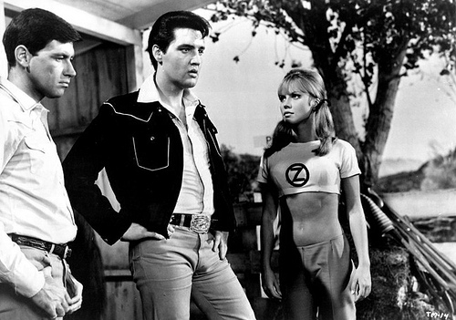 Ah Tickle Me, I’m so torn with this one, it has some really great songs, but it’s a bit silly, but fun silly…soooo I enjoy it. Elvis starts off by singing Long Lonely Highway, which I think was actually meant for Roustabout and was cut. Very cool song that one. Elvis was 30 when filming this one, and you can see a tiny bit of weight when he gets off the bus. But that’s what happens when your 30. He plays Lonnie a rodeo rider, out of work he sings to earn a crust. The girls love it and their guys hate it, you know how that goes…fight (with Red West) fired, hired by a gorgeous lady…and off to the Circle Z Ranch. The boys will enjoy this movie a fair bit, starting with the girls doing their stretches. Oh so many shapely girls!!