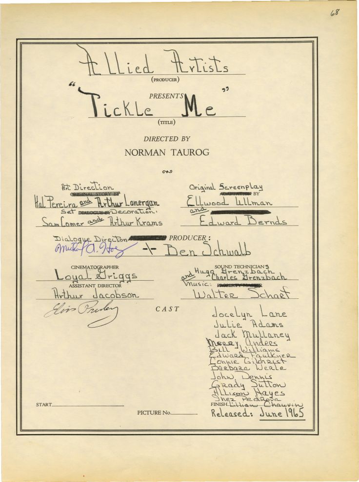 As for Tickle Me, my favorite song is “It Feels So Right”. I loved Stanley, his little side kick and I love any movie that calls upon Elvis to exercise his comedic timing. Anyone who knew him reports that in addition to all, he was naturally a funny guy. Did anyone notice that Jocelyn Lane wore Ursula Andres dress? My favorite scene was when Elvis runs back and forth between Stanley and Jocelyn who are afraid. I also love that Jocelyn Lane later became a Spainish princess. Elvis deserved a princess.