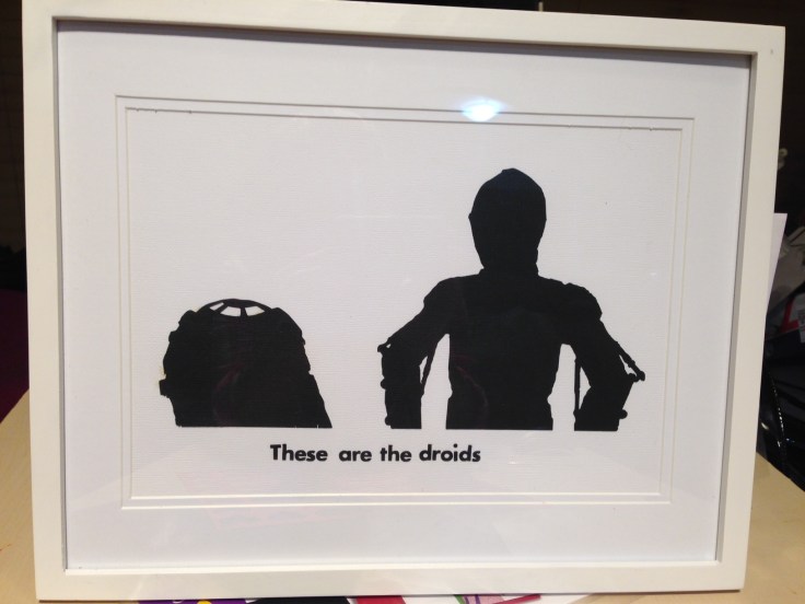 As soon as I posted the Han and Leia piece a close friend of mine jumped straight in and grabbed one then suggested a droid one, so I made one of those too. The Han and Leia piece is not my idea at all, but the Droid one is, Yay for me! Oh and yay for me again…since posting my first piece “The Love Tree” I have received orders (there is an “S” on the end, plural!! oh yay!) everyday! It is very exciting.