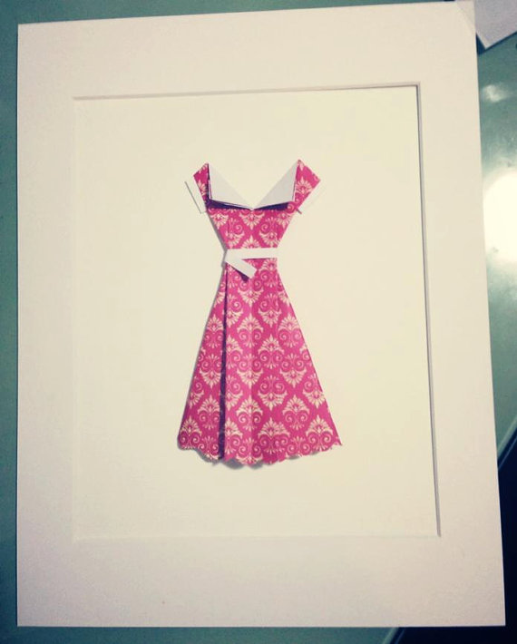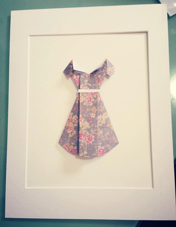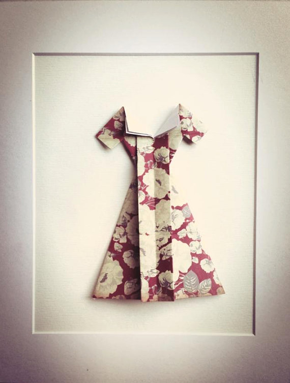 I love vintage dresses and patterns. A few days ago I scored a little pad of beautiful vintage papers just the right size for origami. I had all intentions of doing some origami dresses all week but was just too busy…I have sold quite a few of the Teacher Poem Paper Art piece and it’s really time-consuming, so I didn’t get around to it. But unfortunately I ended up on the lounge for the weekend unable to move much, so I thought I would take the opportunity to see what I could come up with.
