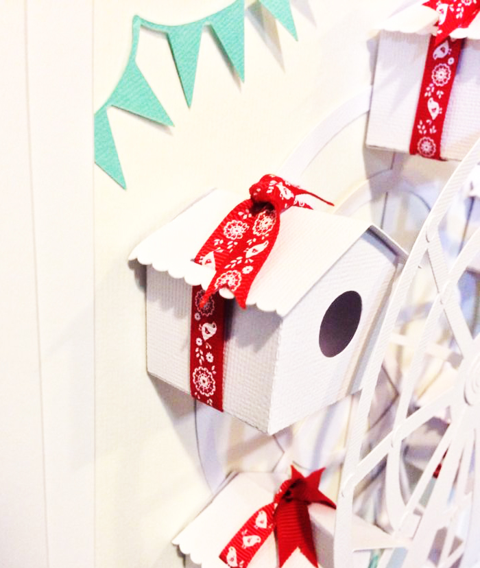 Spent a fair bit of time on this and I love it. The carriages are little bird houses tied with red ribbon. Just posted it on my facebook page, I just wish that I could have taken some outside shots of this but mother nature had some other ideas. We have just had a very wild storm pass through here with loads of lightning and thunder and even reports of a tornado nearby. Luckily we missed out on most of it and we didn’t lose power either. Hope everyone is okay though.
