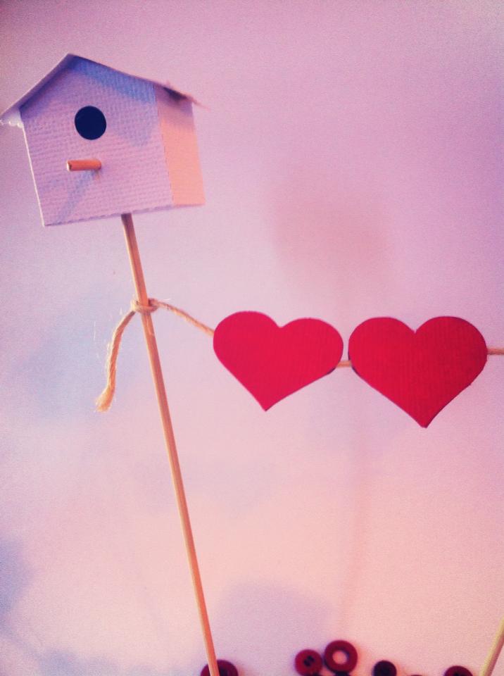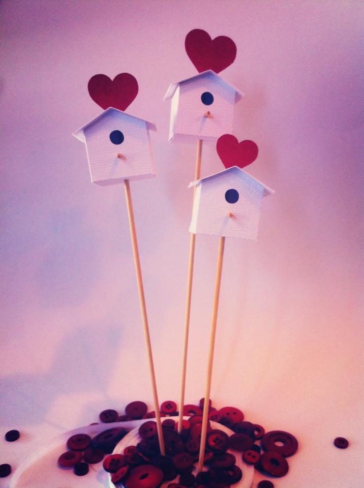 Wedding Cake Toppers 2 Bird Houses joined by heart garland