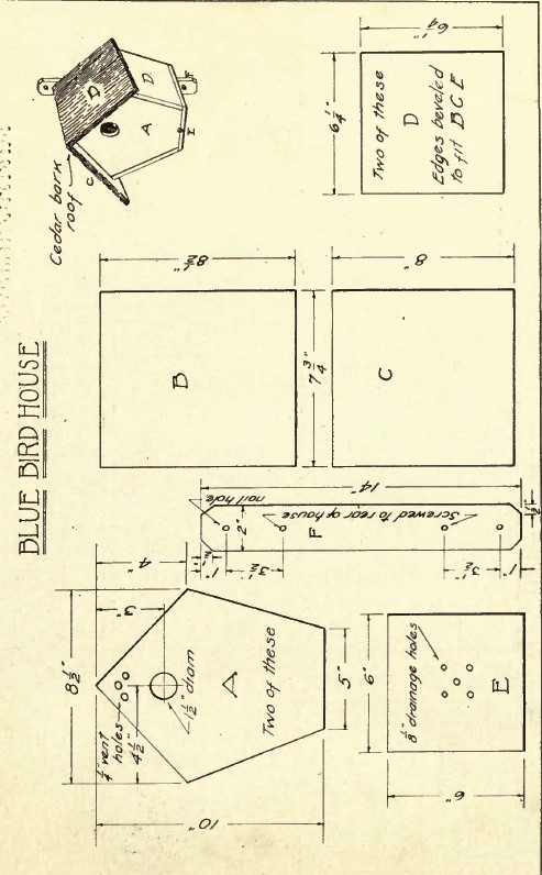 Some cut little birdhouse plans. I am pretty sure that if you print these you could just add a few tabs when you are cutting these out and have yourself some little paper birdhouses. Or you could print them out and make yourself some wooden birdhouses.There are quite a few patterns for birdhouses floating around the internet, but I will always be drawn to the old original drawings. These would even look lovely framed.